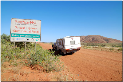 This didn't bother us much, as we've previously climbed Ayers Rock, circled its base, and done the Valley of the Winds walk at the Olgas. We paused at the westbound signs and the start of the dirt road that would take us to Laverton in WA, a 1088 km journey. There, we lowered our tyre pressures on the ute and van to better absorb the rough roads. Van tyres were reduced to 25 psi, while rear tyres on the ute were set to 30 psi and front tyres to 28 psi. We then drove more slowly, taking these lower pressures into account.