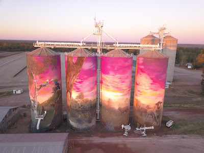 GrainCorp, which owns most of the silos, has made more available for painting across regional Australia. Very few of these silos now store grain; instead, the grain is stored on the ground, covered with large blue tarpaulins.