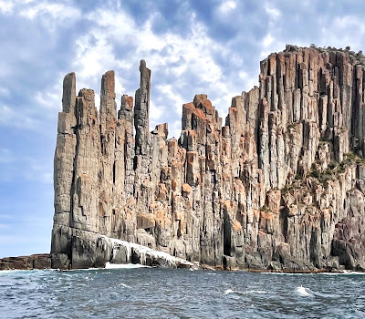 After departing from the calm waters of Adventure Bay, we headed south into a moderate swell. While several sea caves were in the area, conditions did not allow our boat to get too close to them. Similar to the Tasman Peninsula, the cliffs and pillars in this region are composed of dolomite, with the highest point reaching 276 meters. Our trip concluded with a visit to a group of islands known as 'The Friars,' home to a large colony of Australian fur seals.